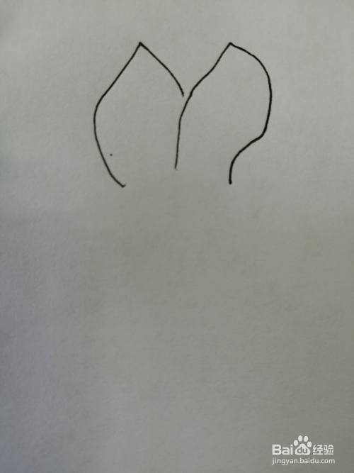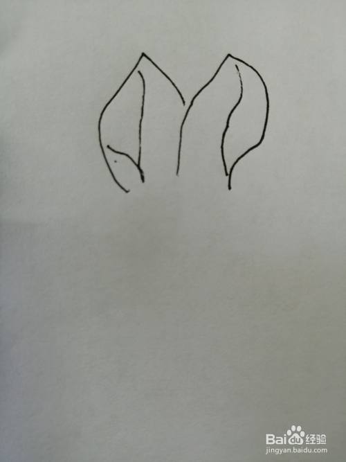 第一步,我们先画出可爱的小兔子的两只耳朵,注意耳朵纹路的画法。