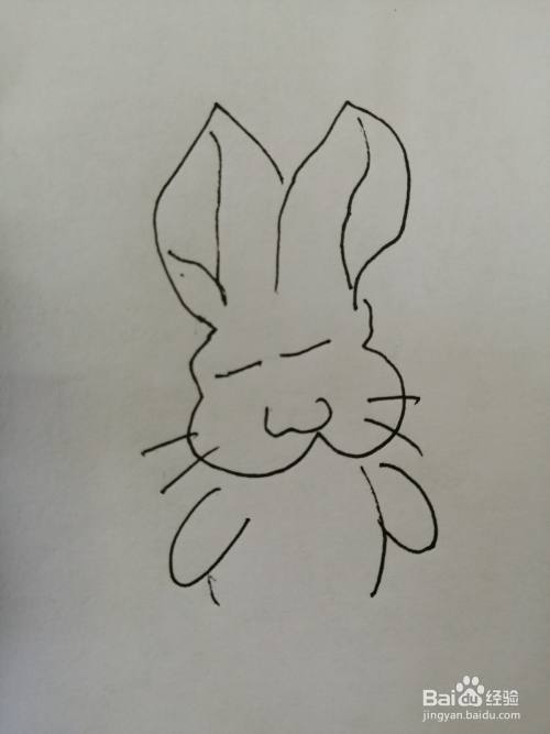 第五步,接着我们继续画出可爱的小兔子的两只手臂,手臂画法比较简单。