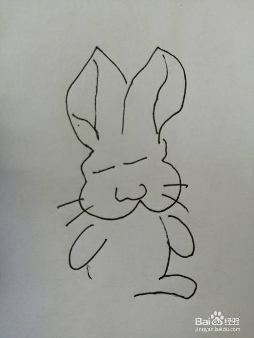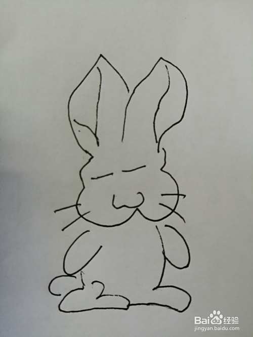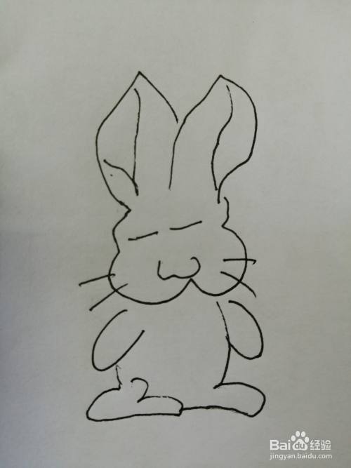 第六步,然后把可爱的小兔子的身体和两只脚画出来,注意小兔子两只脚的位置。