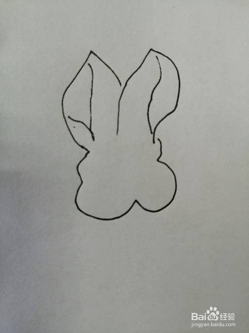 第二步,然后画出可爱的小兔子的头部轮廓,轮廓画法也比较简单。