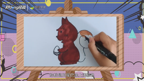 开始涂颜色。给松鼠的尾巴涂上浅棕色。