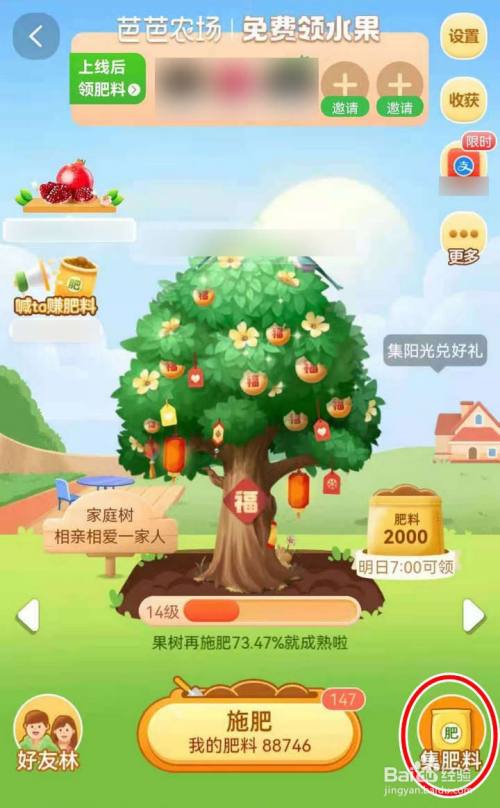 打开芭芭农场主页,果树快成熟了,选择右下角集肥料;