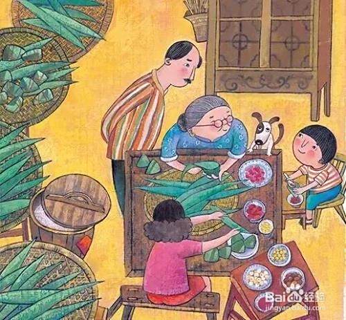 全家围坐在一起包粽子的场景。端午节,大家一定吃粽子了吧?全家人是怎么包粽子的?奶奶在干什么?爸爸在干什么?妈妈在干什么?你呢?大家的表情是怎么样的?