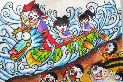 赛龙舟场景。你有没有看赛龙舟?即使不是在现场,通过电视,你一定可看了赛龙舟,对不对?将这锣鼓喧天的场面画下来吧!当然也可以展开想象,将自己和朋友画进去哦!
