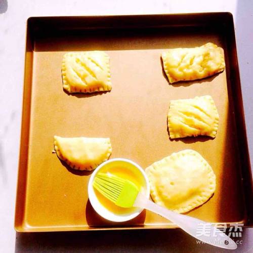 17做好的派,鸡蛋打散对入2汤匙清水,派皮表面刷上鸡蛋液。