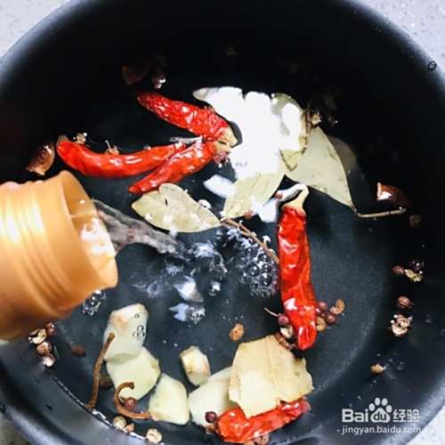 锅里放入适量的水,然后加入适量的白醋,花椒,干辣椒,水量根据豆角的量来放。