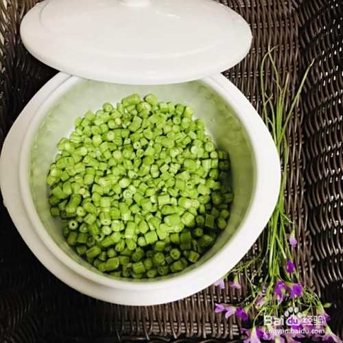 新鲜豆角一把,要选这种嫩而翠绿的洗干净切丁。