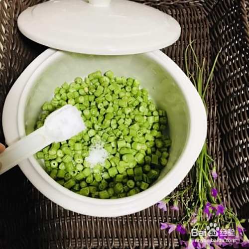 腌豆角怎么腌好吃又脆:豆角洗净切丁,加盐控水,干辣椒,醋,花椒加水熬煮,倒入豆角密封发酵。
