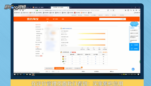 点击屏幕上方我的淘宝、已买到的宝贝,进入后台,点击左侧的评价管理。