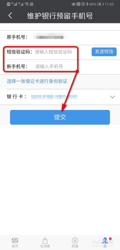 进入维护银行预留手机号界面,输入新的手机号、验证码,点击提交即可更换了。