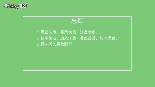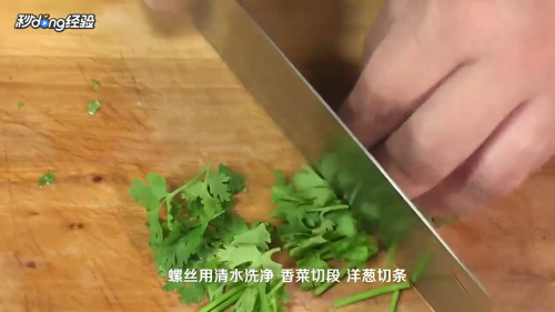 螺丝用清水洗净,香菜切段,洋葱切条。