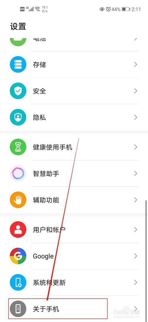 第二,然后点击其中的“关于手机”