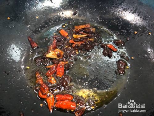 锅中添加适量食用油,油热之后放入各种香料翻炒均匀。