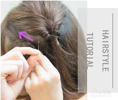 然后用手指插进头发的中间,将扎好的发束反转,通过中间的用手指造成的空隙。