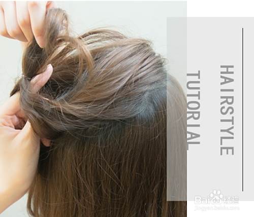 取头顶上的一部分头发,抓取头发的时候不需要太过均衡,稍稍向一侧倾斜,如图片里一样头发松散地用手抓起来。
