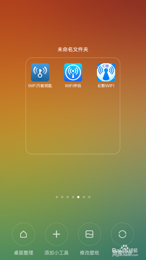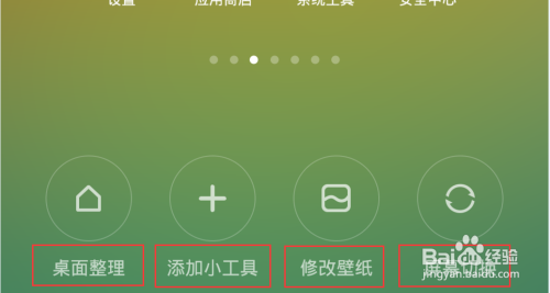 接着我们会发现桌面上出现了一系列选项:桌面整理、添加小工具、修改壁纸和屏幕切换等等。