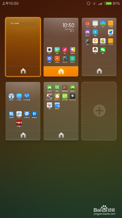 在手机桌面上,三指捏合就是用三根手指在桌面上互相滑动靠拢,就会出现桌面预览图,我们可以再预览图上设置主页和页面顺序等;小伙伴们可以试试。
