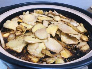 加入猪脚块!继续保持中小火煮开后再煮10来分钟即可关火!美味可口、酸甜补血补气的姜醋就做好了