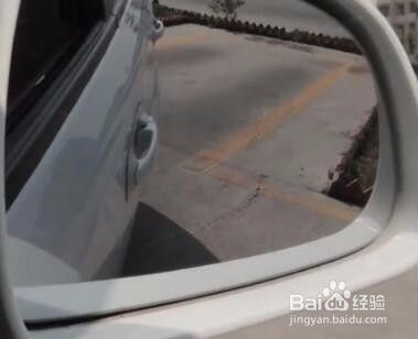 6、当左侧后视镜下沿与前面黄线重合的时候,停车。