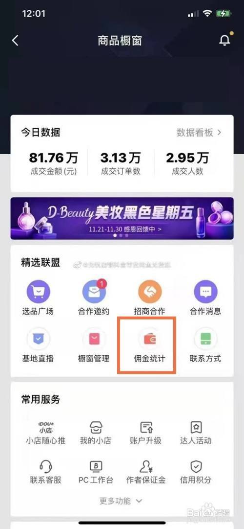 打开抖音app,点击商品橱窗,再点击佣金统计。