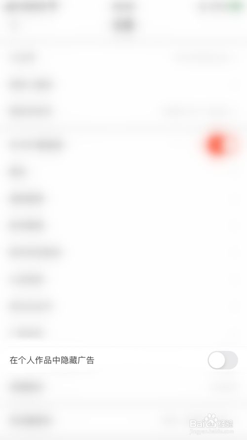 设置界面点击”在个人作品中隐藏广告“后面的圆点