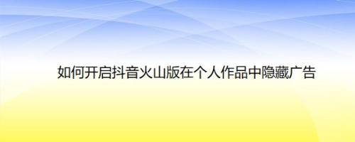 抖音火山版是一款升级版本的火山小视频App,将抖音和火山小视频互通,创作质量更加的优秀的作品展现给用户,那么如何开启抖音火山版在个人作品中隐藏广告以满足不同用户的需求呢?