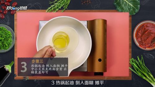热锅起油摊平面糊,煎至两面金黄即可。