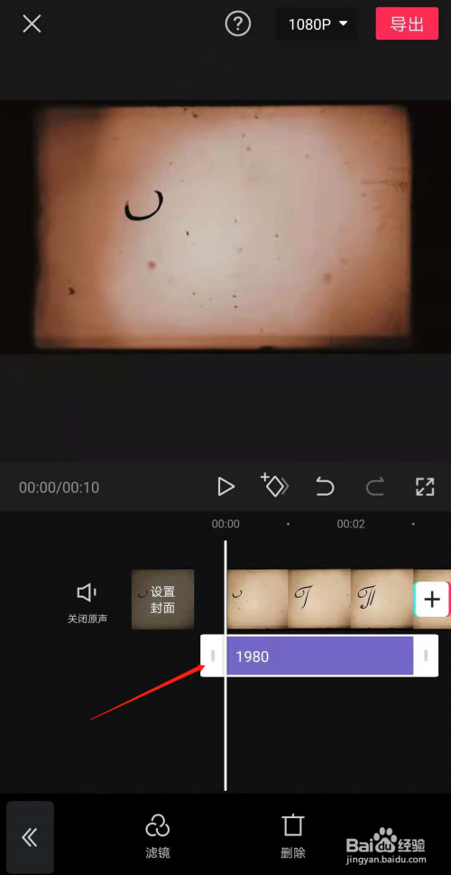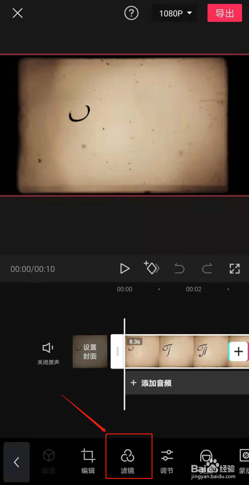 在编辑台中选中需要添加滤镜的视频,将下方工作栏向右移动,找到“滤镜”按钮,如下图所示。