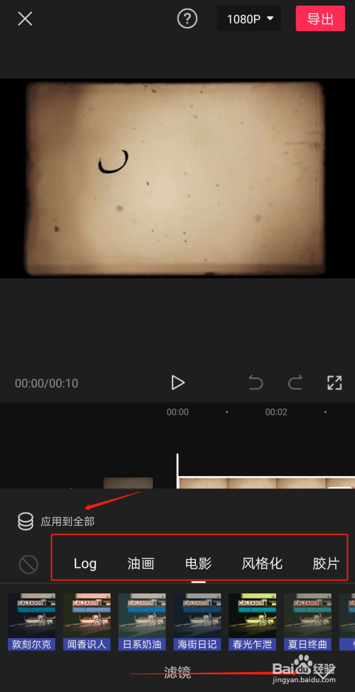 点击滤镜 进入后,下方有11种选择模式,现在选择你需要模式,如下图所示。