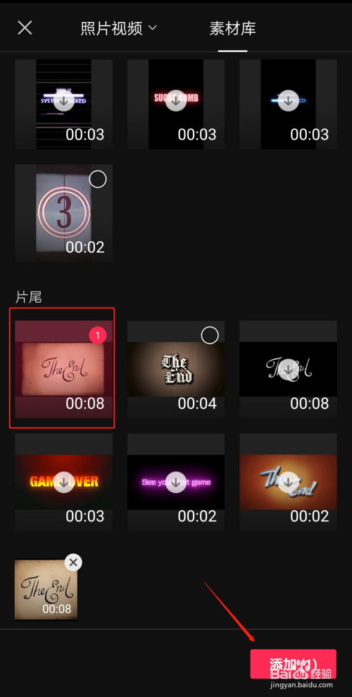 选择好你需要的剪辑的视频,点击选择,点击下方的添加即可添加,如下图所示。