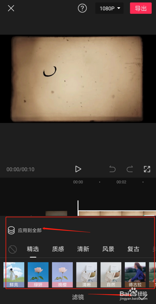 选中你需要的滤镜,再点击右下角的√确认。如下图所示。