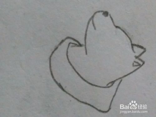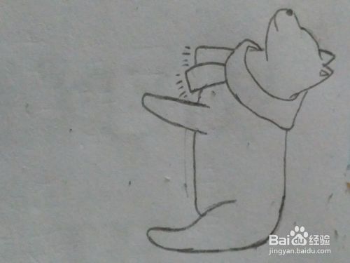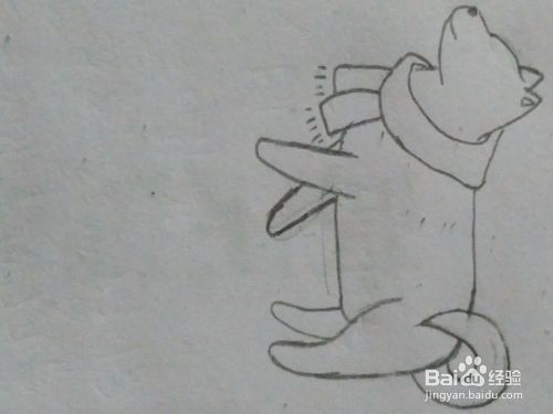 头部轮廓下面,我们画出戴在脖子上的围巾。将秋田犬的身体部分画出来。