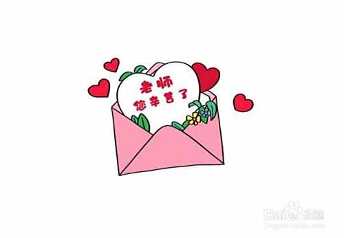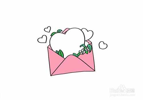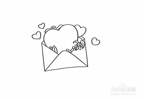 2、接着在信封口画上一颗爱心,爱心的周围画上一些小爱心装饰,基本就画出来了。