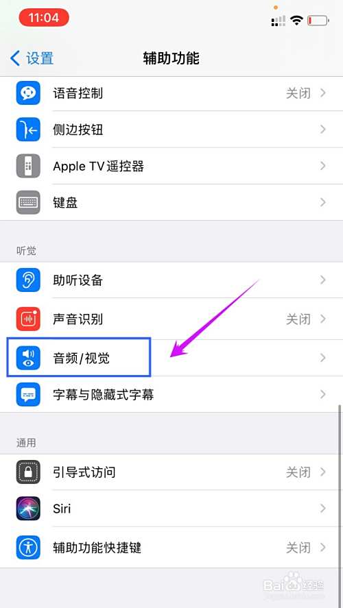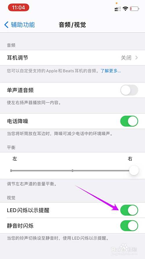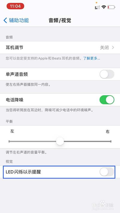进入音频视觉页面后,再找到“LED闪烁以示提醒”。