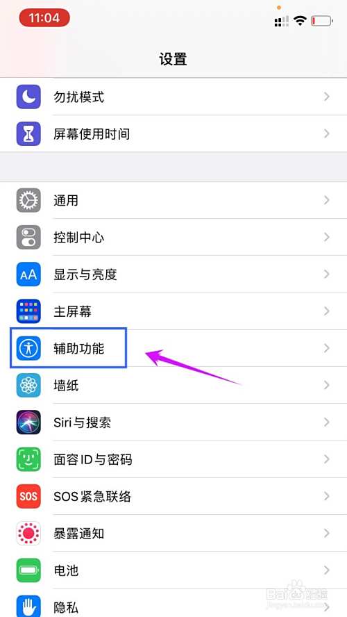 进入苹果手机的设置页面后,点击“辅助功能”。