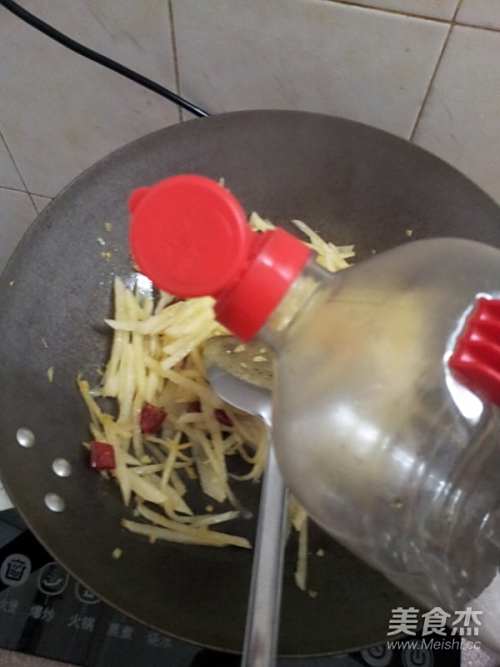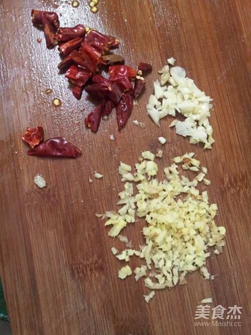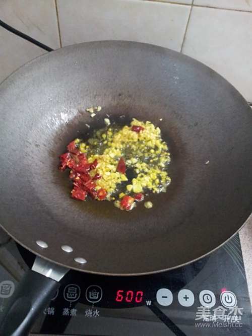 4坐锅下油爆出姜蒜沫和干辣椒出香味