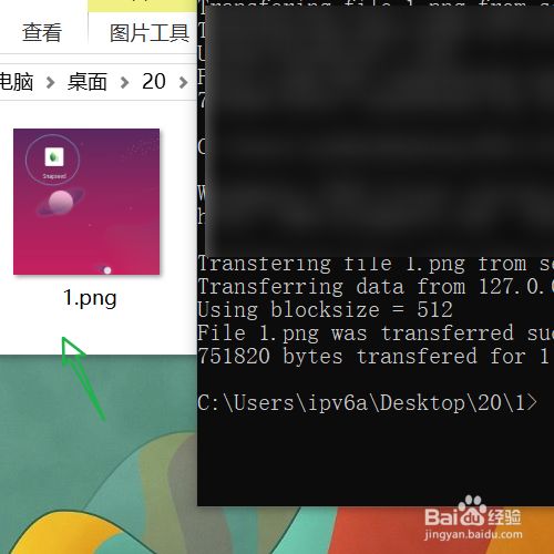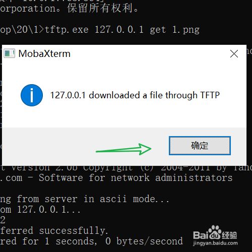 这里有一个从服务器端下载文件的命令, tftp 服务器ip get 文件名, 可以从服务器上下载一个名字叫做1.png的文件。