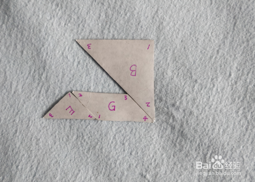 把E放在G的左侧挨着,1在上,3、2在下,E的1、2分别挨着G的2、1,如图。