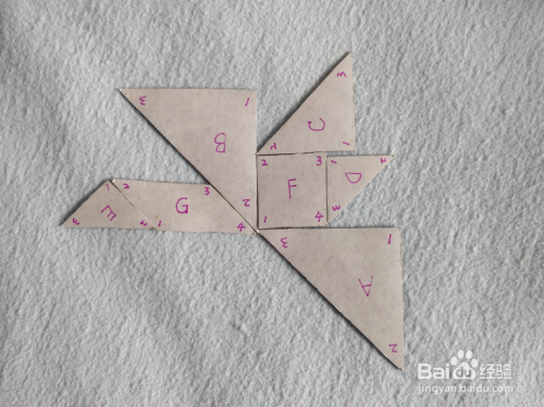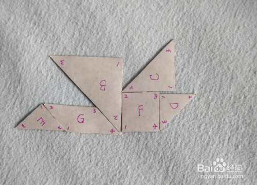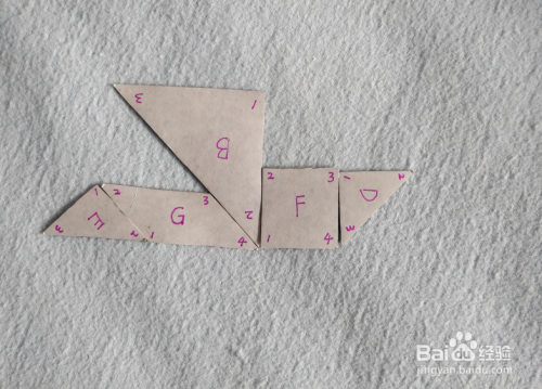 为了方便叙述,对每个形状用字母进行标注,每个形状的顶点用数字进行标注。具体标注如图。