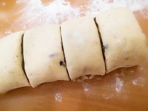 卷好的豆沙卷切成一个一个小块