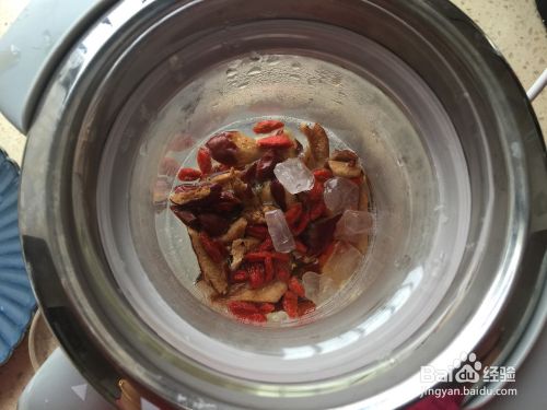 燕窝快炖好的时候加入红枣、枸杞和冰糖