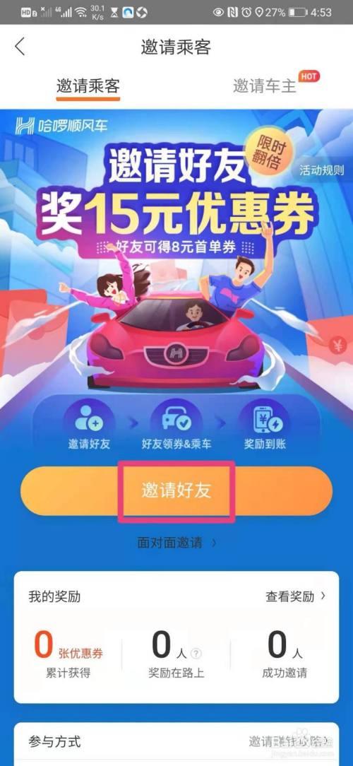 如何在手机哈啰出行顺风车里邀新获奖励券?下面给大家介绍一下。