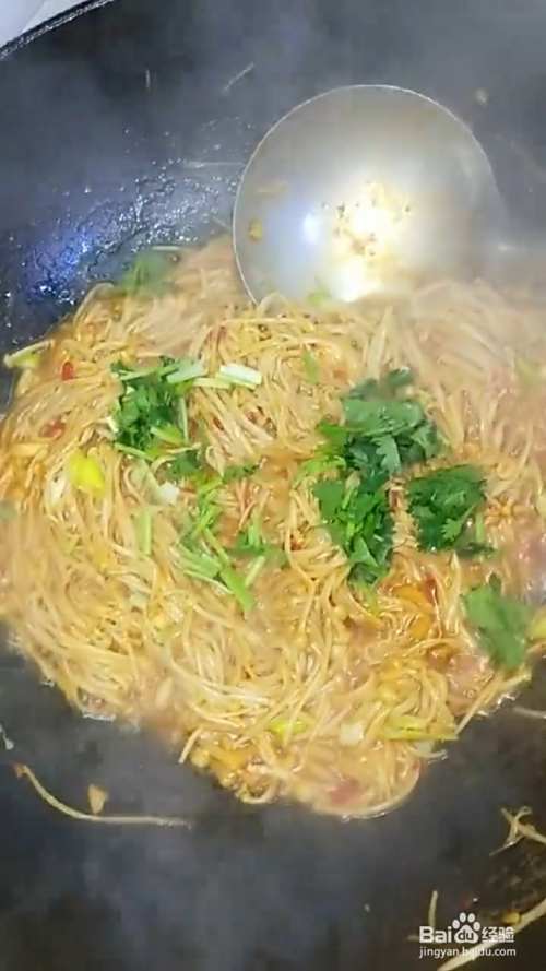 再加入酱油翻炒,加盐大火翻炒至入味,最后再加入味精,香菜翻炒均匀即可出锅。