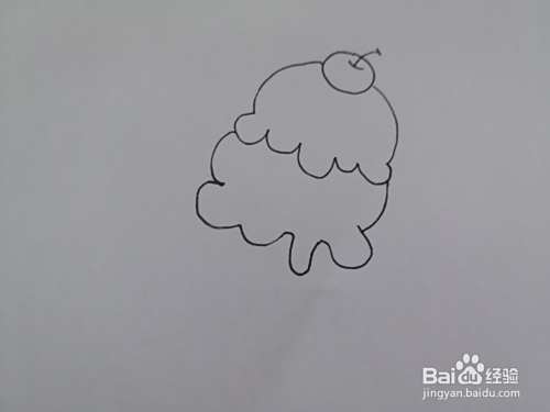接着沿着水果向下画出冰淇淋的第二层奶油。