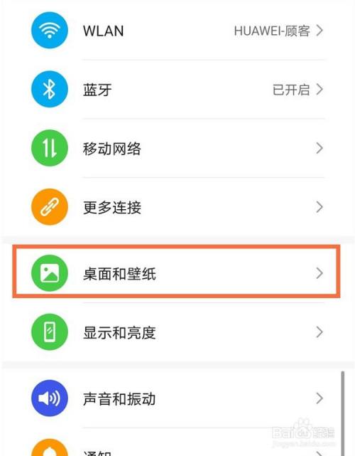 1、在手机设置菜单中点击【桌面和壁纸】。