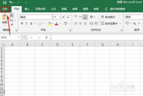 首先,打开一个空白excel文档。点击上方菜单栏中的“文件”选项。