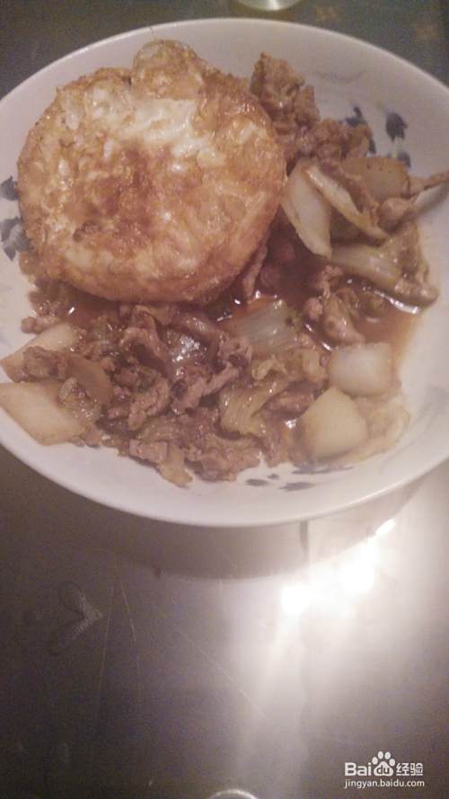 在锅中放入油,烧热,把切好的白菜和肉丝放入锅中翻炒,然后放入盐、味精等调味料。