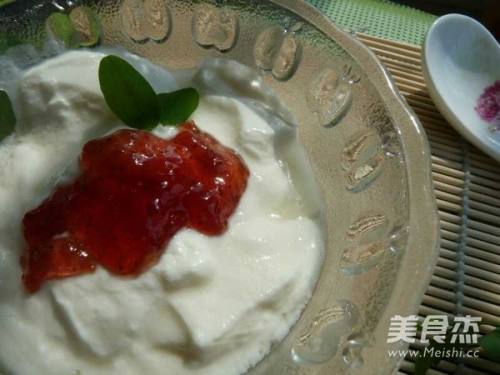 9大功告成!放上草莓酱,尽情的享受老酸奶的美味吧!不加糖的酸奶奶香浓郁,口感爽滑!