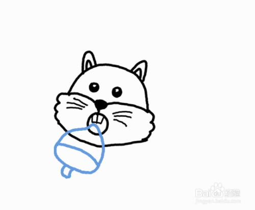 画一个圆以形成嘴。并在嘴里画出两个小的矩形牙齿。用一系列短线勾勒出松鼠的胡须。