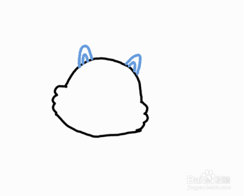 将两个大的弯曲三角形围在松鼠的头顶上。然后,将一个较小的三角形画在每个较大的三角形内。形成松鼠的耳朵。